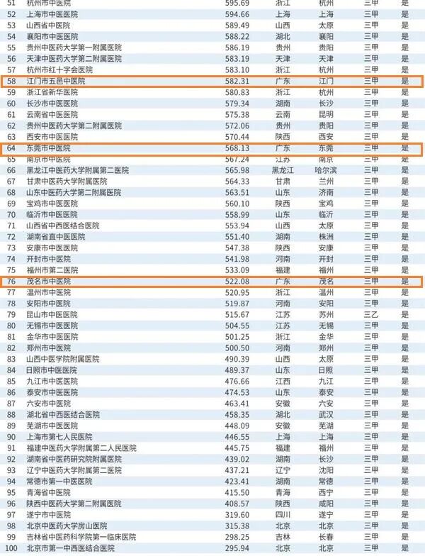 艾力彼发布中医医院百强名单,广东9家中医医院榜上有名